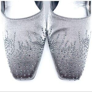 Stuart Weitzman Pewter Fabric Jeweled Evening Heel Pumps Sz 10 Square Toe