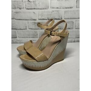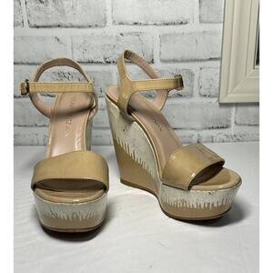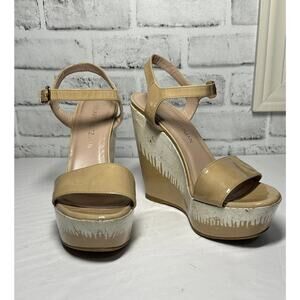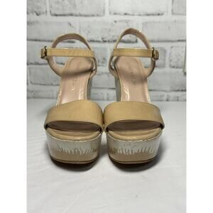 Stuart Weitzman Platform Cork Ankle Strap Wedge Sandals Womens Size 8M Nude
