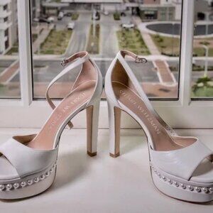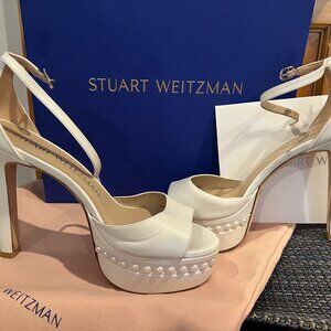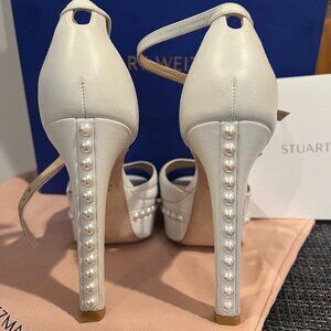 Wear in the soles from dancing but overall in great shape. Comes with dust bag, box, receipt of purchase, SW card, and extra pearls in case one should come loose.