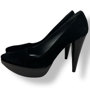 Stuart Weitzman Platform Pumps Shoes Black Suede Leather Size 6