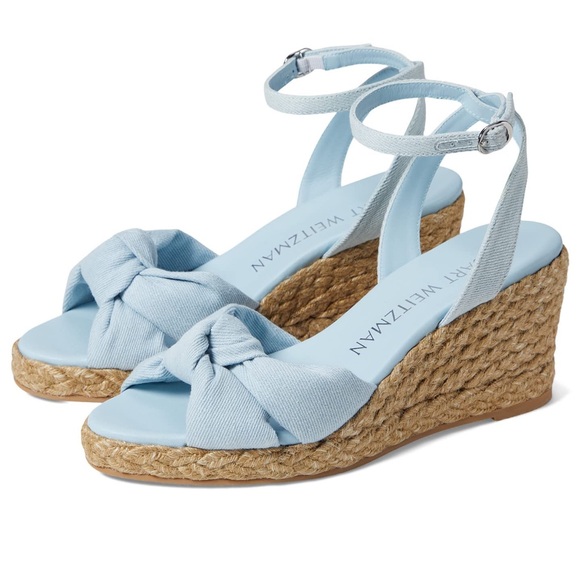 Stuart Weitzman Playa Espadrille Knot Wedge Sandal In Denim Light Blue