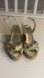 Stuart Weitzman Playa Gold Metallic Leather Wedge Espadrilles Size 8.5