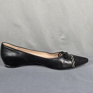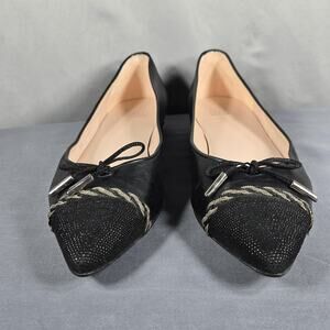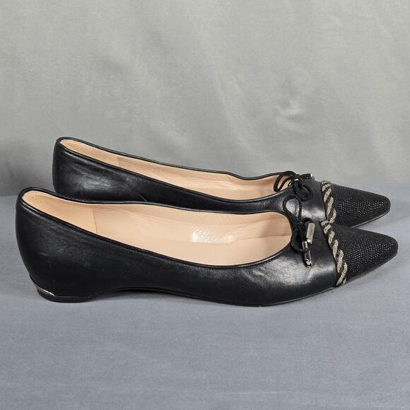Stuart Weitzman Pointed Toe Flats Womens 9 Black Leather Rope Detail Shoes