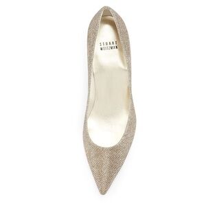 Stuart Weitzman- Pointed-Toe Platinum Poco Metallic Pump Rhinestone Size 8.5