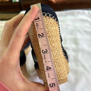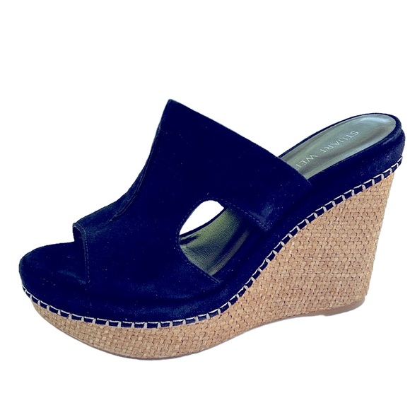Stuart Weitzman Ponte Cutout Espadrille Platform Wedge Slides Navy Blue 8.5