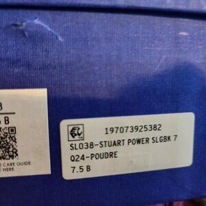 Stuart Weitzman "Power Gold Sling Back" Heels. NIB. Size EU 38/US 7.5. Brand new in original box/packaging with dustbag. Box has minor damage. No rips/peeling/wear assuming floor model, see final pic, looks someone tried them on and stepped in something wet. Absolutely no wear, just those markings on the bottom of one shoe. Still in original sleeves. Smoke free home. No odors. All offers are welcome. Thank you!