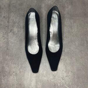 Classic black fabric SW heels are perfect for every occasion. Narrow foot opening provides more coverage, square toe for vintage look