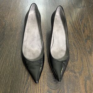 Stuart Weitzman Pumps 8 Narrow Pointed Toe Kitten Heel Black Patent Leather