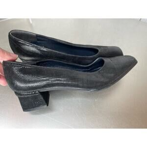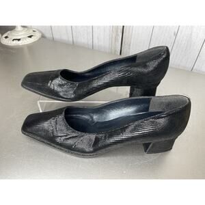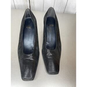 Stuart Weitzman Pumps Black Leather Flared Block Heels Snakeskin Made Spain Sz 7