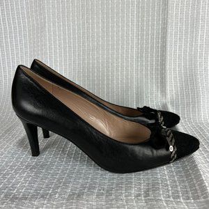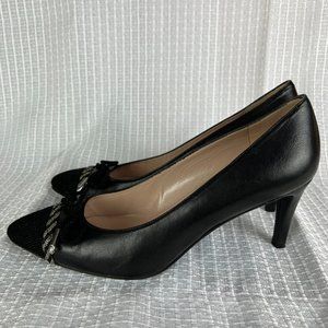 Stuart Weitzman Pumps Heels 8.5 M Black Leather Bow Pointed Toe Designer Luxe