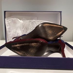 Stuart Weitzman Pumps Heels Pointed Toe Suede Ankle Strap Burgundy Navy