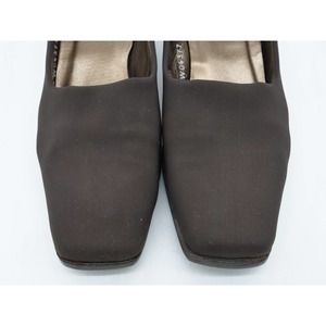 Stuart Weitzman Pumps Womens 7.5 Brown Fabric Square Toe Career Heels Slip On