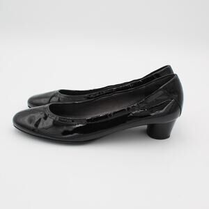 Stuart Weitzman Pumps Womens 7.5 Narrow Black Patent Leather Low Round Heel