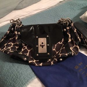 Black and white animal print Stuart Weitzman. No outside damage. Red stain on inside liner. Dust bag available no box. Matching shoes in closet.