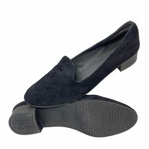 Stuart Weitzman QW00644 Black Quilted Suede Smoking Flats