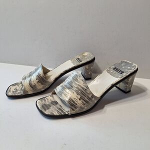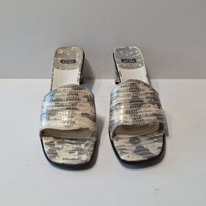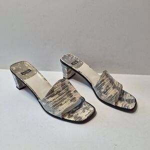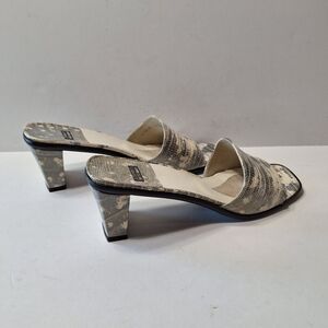 Stuart Weitzman Gray White Leather Snake Print Open Toe Mules Size 9AA