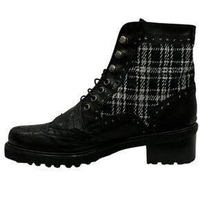Stuart Weitzman Rare Women’s Brogue Ankle Boots Black Plaid Lace-Up Size 8