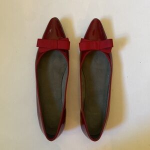 Elegant red flats with a stylish bow. Perfect for any occasion.