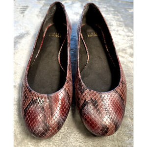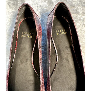Stuart Weitzman Red Gray Snake Print Leather Slip On Ballet Flats EU 38 US 7.5