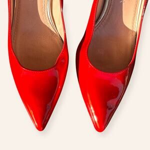 stunning Stuart Weitzman heels in ruby red patent leather.