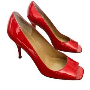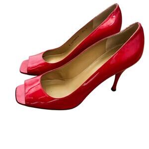 Stuart Weitzman Red Patent Leather Peep Toe Heels Size 9.5