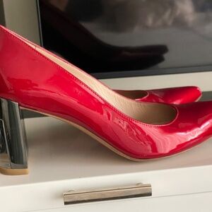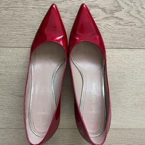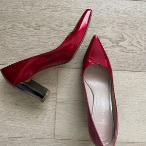 Stuart Weitzman - Red Patent Leather Vintage Pumps with Translucent Block Heel