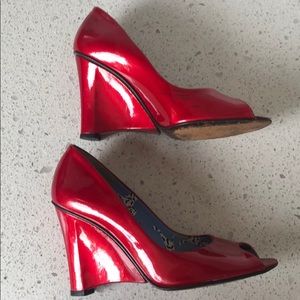 Stuart Weitzman red patent leather pumps