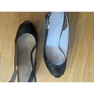 Stuart Weitzman "Riveria" sandals in black patent leather in size 9.5