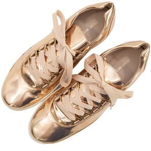 Stuart Weitzman Rose Gold Patent Leather Gaming Sneakers Size 8.5