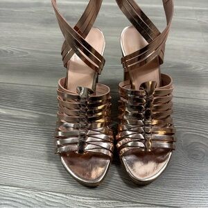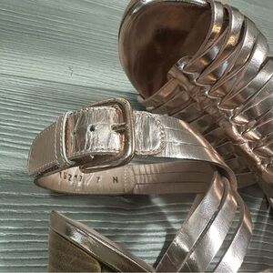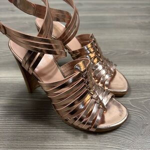 Stuart Weitzman Rose Gold Strappy Heels Size 7N Leather Sole Block Heel Sandals