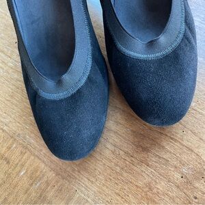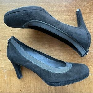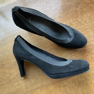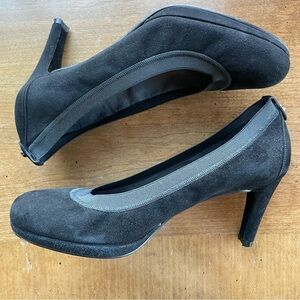Stuart Weitzman Round Toe Black Suede Platform Heels Classic Minimalist Office
