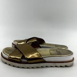 Stuart Weitzman Roza Crisscross Slides Sandals Slip On Leather Metallic Gold 7.5