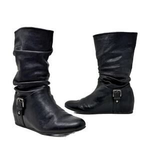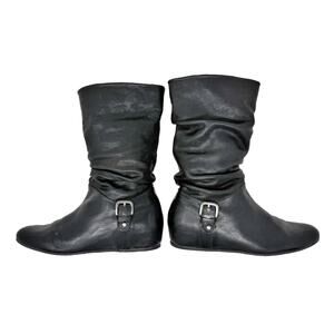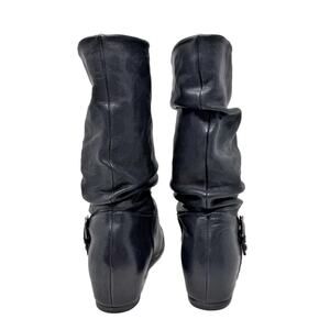 Stuart Weitzman Rugerio Boots Womens 7 M Black Leather Wedge Slouchy Moto