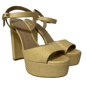 Stuart Weitzman Ryder 95 Platform Sandal Wheat Fine Rafia Size 10 New In Box
