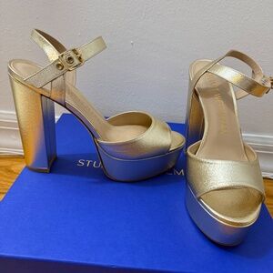Stuart Weitzman Ryder Platform Heel Sandal Gold 38