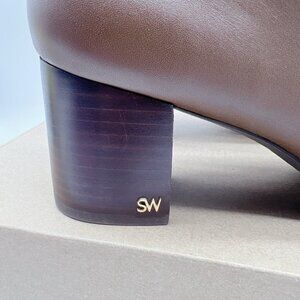 Stuart Weitzman Ryland 60 Zip Leather Ankle Heeled Boots Booties Brown US 9.5