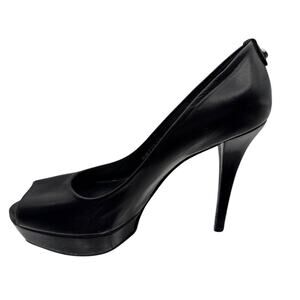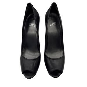 Stuart Weitzman STAGE Kid Leather Black Peep Toe Platform Pumps Size 8.5