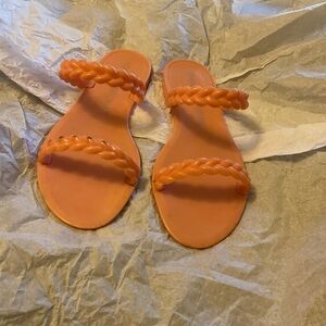 Modern take on the classic jelly sandal. Minimalist sandals with braided straps and flat sole.