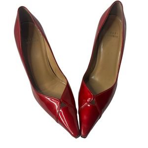 Stuart Weitzman SZ 6.5 Red Patent Leather Pointed Toe Candy Apple Slip on Pumps