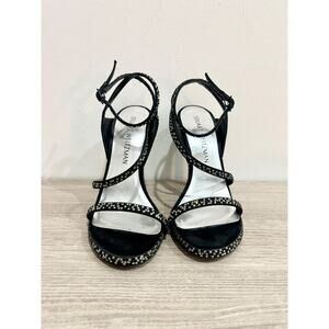 Stuart Weitzman Sam Pave Embellished Ankle Strap Strappy High Heel Black Women 6