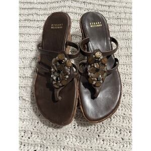 Stuart Weitzman Sandals Beaded Platform Woven Women's Size 7 M Brown Made in Spain B W 45946 Leather Accents *Flaw
