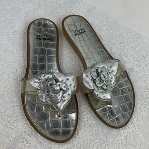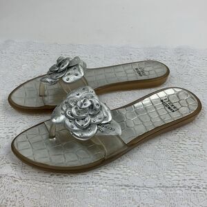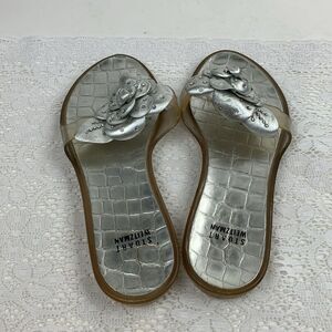 Stuart Weitzman Sandals Silver Clear Jelly Rose Accents thong toe Size 8 Slip on