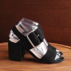 Stuart Weitzman Sandals WMS SZ 5.5M BLK Suede Block Heel Buckle Slingback Shoes