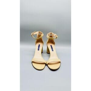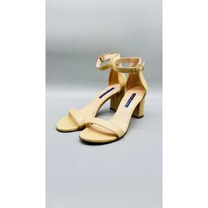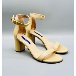 Stuart Weitzman Sandals Womens 7.5 Beige Leather Block Heel Nudist 75 Shoes