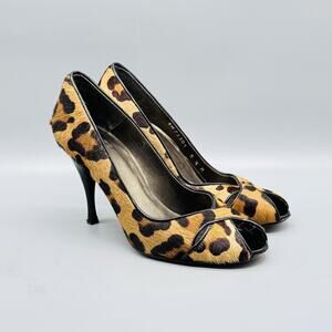 Stuart Weitzman Shoes Womens 5.5 Brown Calf Hair Leather Pumps Leopard Peep Toe
