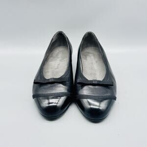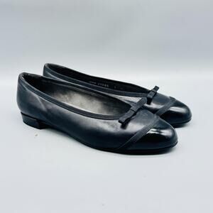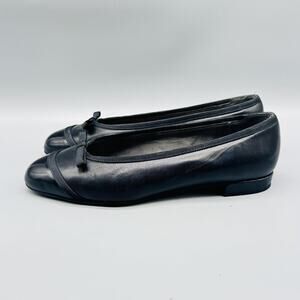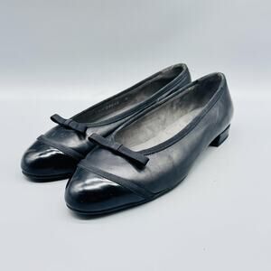 Stuart Weitzman Shoes Womens 7 Black Leather Ballet Flats Bow Cap Toe Slip On
