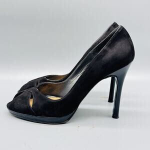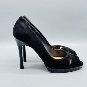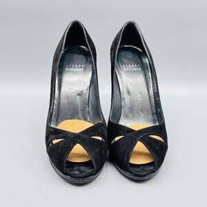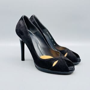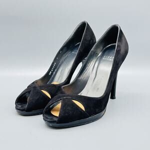 Stuart Weitzman Shoes Womens 7 Black Suede Peep Toe High Heel Pumps Dressy
