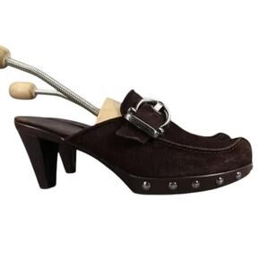 Stuart Weitzman Shoes Womens 8.5 Mule Heel Fashion Studs Buckle Leather Classic