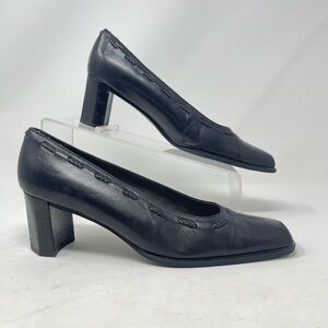 Stuart Weitzman Shoes Womens 8AAA Narrow Black Leather Pumps Square Toe Heels