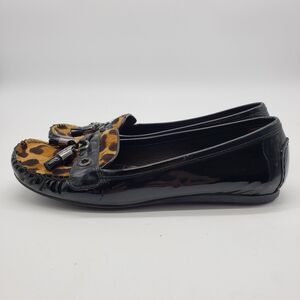 Stuart Weitzman Shoes Womens Size 8 Black Leopard Tassel Loafers Made in Spain